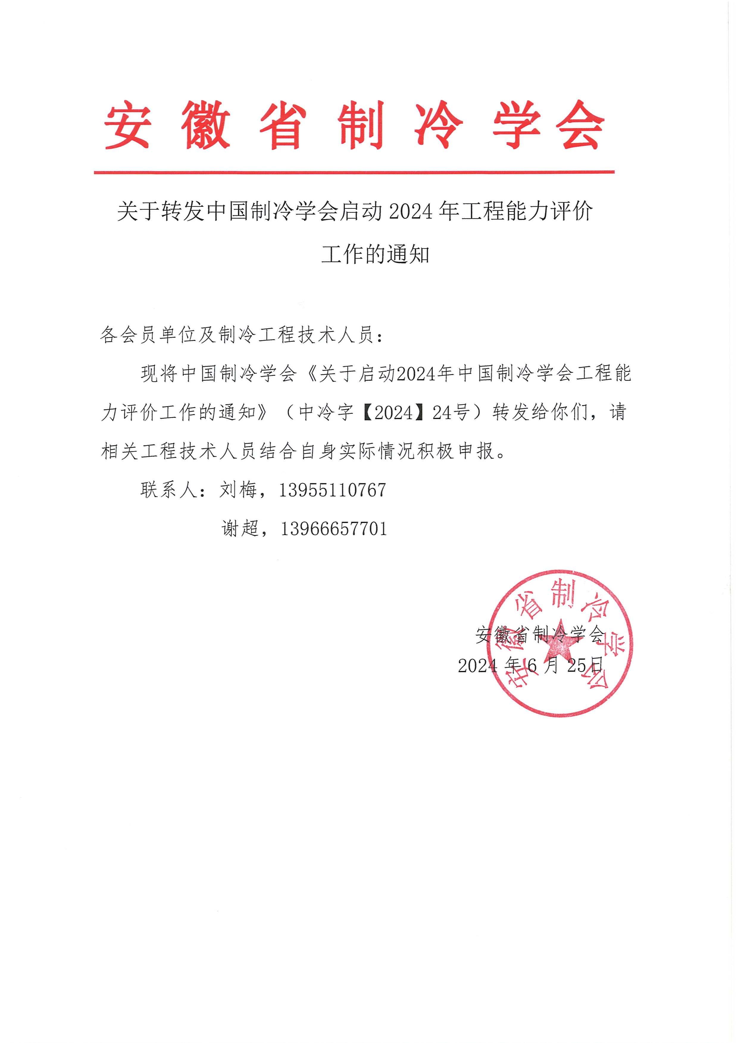 关于转发中国制冷学会启动2024年工程能力评价工作的通知